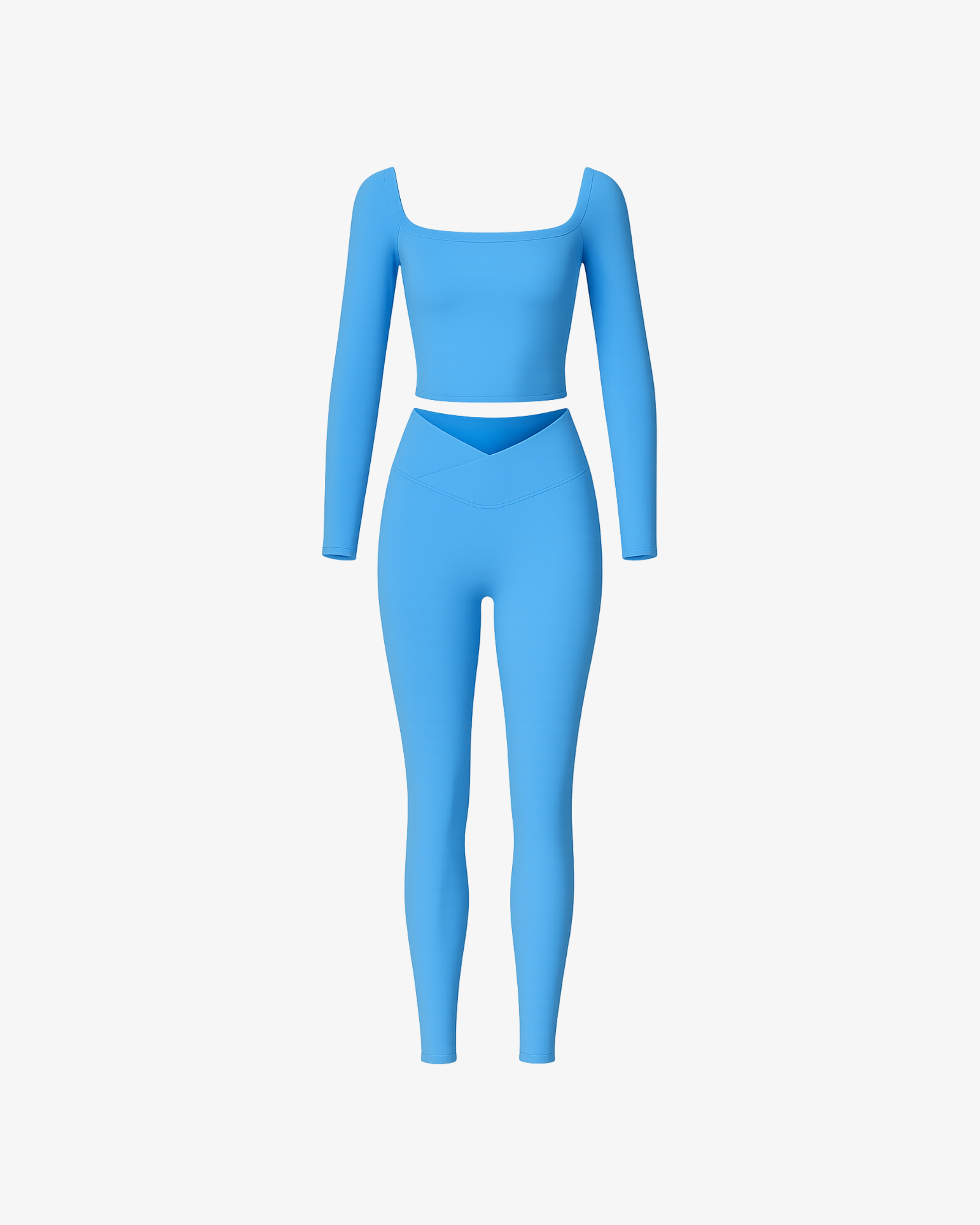 Stay confident and stylish during every workout with our Essential Set with Scrunch. Designed for women who love a sleek, flattering fit, this two-piece set features a sculpting crop top with full-length sleeves and a matching pair of V-waist scrunch shorts.