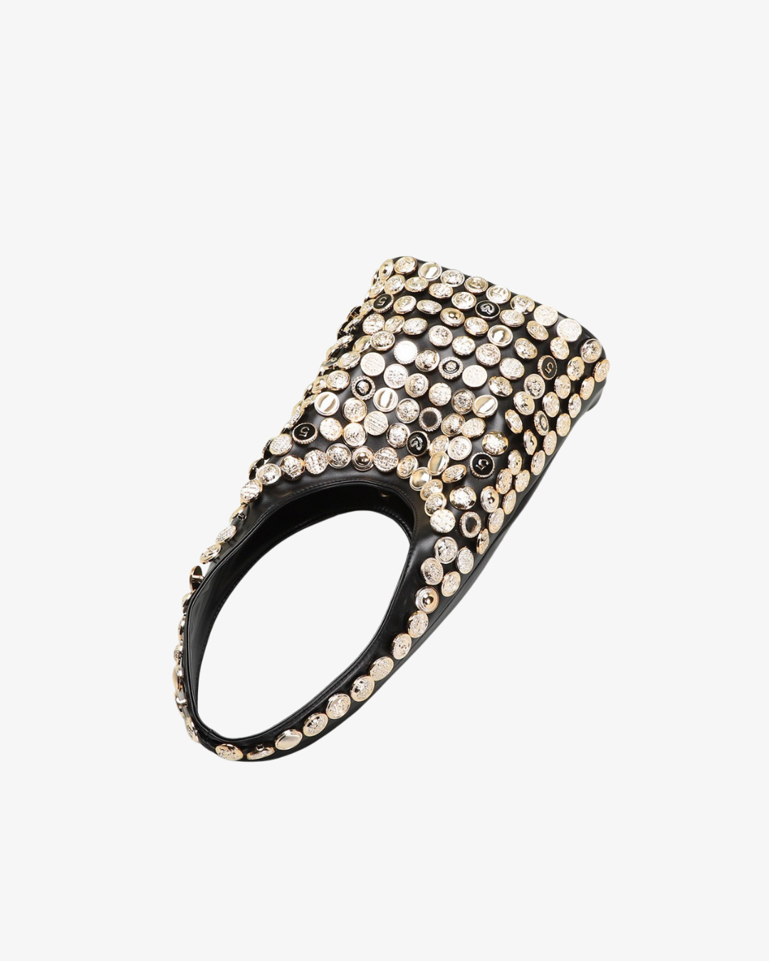 The unique U-shaped handle offers a comfortable fit under the arm, while the structured design adds a bold, fashion-forward silhouette. Whether you're heading to a party, event, or styling your everyday outfit with something extraordinary – this bag delivers sparkle, texture, and conversation-starting appeal.